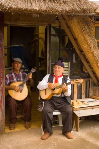 Gisteren hebben we een wandelboekje gekocht. Hierin stonden wat tips over het weer. Voor Madeira ligt een eiland Ilhas Desertas. Als deze nauwelijks zichtbaar zijn, staat er noordoostenwind (uiteraard weten wij als zeilers ook wel waar de wind vandaan komt). Het noorden en oosten zijn dan bewolkt en het zuidwesten is meestal zonnig. Zuidwestenwind is regen (maar dat wisten we vanuit Spanje en Portugal al). Vandaag blijkt het echt te kloppen. Ria en Otto komen uit Funchal met zon. In onze haven schijnt deze inmiddels ook, maar als we naar het noordoosten rijden wordt de bewolking alleen maar dikker en miezert het soms. We willen naar Santana omdat daar nog authentieke huisjes zouden staan en iets verder een mooie wandeling is. In Santana is het gewoon te koud om op het terras te zitten en het aantal toeristen overstijgt aanzienlijk het aantal huisjes. Bij een minimuseum toont de eigenaar trots een Vlaamse krant, waar hij met zijn foto in staat. Op mijn opmerking dat ik ook zo’n foto wil, pakken hij en zijn maat hun gitaar en zingen de Fado.