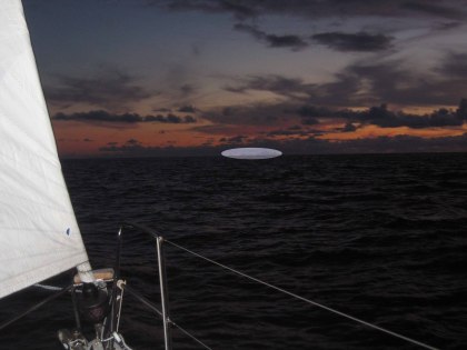 In het begin van de avond trekt de wind iets aan, en wordt het weer apenkooien. En als je nog 4 etmalen moet zeilen, wil je niet apenkooien. Dus gaan er binnen een uur 2 riffen in het grootzeil en wordt de Genua iets ingerold. We zeilen nu de duisternis in, dan lijkt alles wel veel harder te gaan. Het water langs de boot licht op, er staan echt duizenden sterren. Helaas geen maan. Wel regelmatig lichtjes in de verte. We turen met de verrekijker, zoeken naar boordlichten, zetten soms de radar bij. Het zicht is wel 15 mijl. We zitten duidelijk nog een in scheepvaartroute. Geen visserschepen meer, maar alleen grote oceaanstomers. Ze varen meestal met een grote boog om ons heen. Van slapen komt bij mij geen moment, Bert kan hier beter tegen en pit tijdens mijn wachten toch het grootste deel. Met Youp en Harrie Jekkers op de mp3 zit ik te lachen in de kuip. Ons wachtsysteem is niet zo heel strak. Bert gaat rond 20.00 uur voor twee uur plat. Hij heeft wacht van 22.00 tot 02.00 uur en ik van 02.00 uur tot 06.00 uur. Gek genoeg hebben we juist in de nacht de meeste wind. Tegen het einde van mijn wacht wordt het wat minder. Om 06.00 uur ga ik nog even liggen (ook dit keer weer wat langer dan even). Nog steeds wat katterig, hangerig en slaperig.