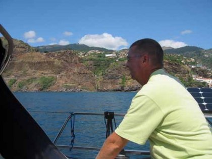 We besluiten naar een haven in het westen te gaan: Calhete. Hier ligt ook een vrij nieuwe marina (met wind uit het zuiden en westen lig je hier nergens goed voor anker). Helaas betekent dit wel kruisen. We verlaten de haven met 18 kts wind en zetten 2x een rif. De wind wordt al snel minder en eigenlijk zeilen we heerlijk. Bij de kust draait de wind en hoe dichtbij hoe meer we parallel aan de kust kunnen varen (en dus minder hoeven te kruisen). De zon schijnt weer eens uitbundig, de kust is werkelijk prachtig met bergen en watervallen en het water indigo blauw. De golven worden snel wat minder. Dit geldt ook voor de wind. We eindigen op de motor met 1 kts wind. Na 4 uur varen komen we in een gezellige marina. De Yara ligt hier ook al en zal morgen naar La Gomera vertrekken. Wij gaan op zoek naar een mooi gaatje om via de Selvagems (onbewoonde eilanden behorende bij Madeira) naar Graciosia bij Lanzarote te gaan.