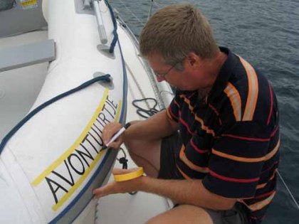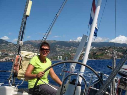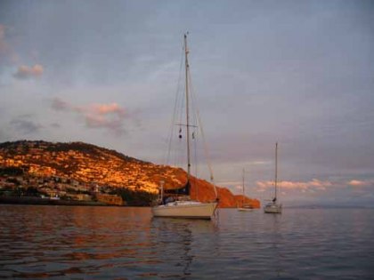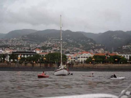 En aan een nieuw plekje na 8 dagen zijn we ook wel aan toe. We hebben nergens zo lang gelegen. Er staat helaas geen wind en op de motor gaan we achter de Yara aan naar Funchal. Het is rustig weer, dus we gaan voor anker. De bijboot komt weer van het dek. Op de bijboot moet een naam staan. Dat is wel zo handig als er tien liggen aan een ponton en dan is het ook herkenbaar bij welke boot hij hoort. Wij noemde onze bijboot altijd voor het gemak Quicky, omdat het een Quicksilver is, maar dit heeft weer geen enkele relatie met de boot. Daarom is Quicky vandaag omgedoopt en voorzien van een naam op de drijvers. Hij heet nu “Avontuurtje”. Ik ben met Avontuurtje boodschappen gaan doen samen met Poll en Kyra van de Yara. Bert doet het even rustig aan en probeert vriend Willem te skypen vanaf de boot. Madeira heeft veel Wifi zones en bij de haven is er ook één. Helaas is de verbinding net te matig. In de avond hoor ik een positief bericht dat het met mijn geopereerde moeder goed gaat. Daar ben ik erg blij mee. We gaan al rollend de nacht in, want echt rustig lig je hier niet.