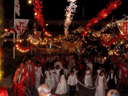 Gisteren zagen we dat ze de kerk aan het versieren waren. De “koster” vertelde ons dat er vandaag een processie zou zijn om 18.30 uur. Dus stonden we vanavond na een rustige dag aan boord op tijd op het Wifi plein. Een drukte van belang. De rust is overigens relatief Bert en Lars van de Laaxum hebben zoveel om over te praten, dat Lars voorstelde dat ze niet meer tegelijk het dek op mogen. Omdat dit iedere keer resulteert in een praatje van minimaal een half uur.