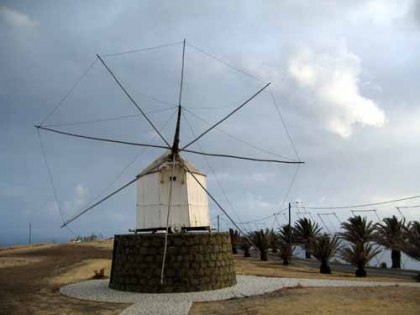 We moeten alleen nog even het copyright van de foto bij Miranda van de Neste checken, want zij heeft de foto gemaakt tijdens een nachtelijke oversteek van Zuid Engeland naar Bretagne. Ze dacht toen nog “goh leuk een foto bij zonsondergang”, maar nu is er dus een website, visitekaartjes en een spuitmal voor op de muur van gemaakt. Het werkte wel aanstekelijk want een half uur later, zaten er 2 nieuwe artiesten de muur te bewerken. In de avond nemen we de gehuurde auto van Lars en Aukje nog even mee voor een korte rondrit. Dit stuk hadden we op onze fietsjes niet getrokken. Het is ongelooflijk hoe kaal en dor Porto Santo is en hoe mooi de wegen zijn, die eigenlijk nergens toe leiden.