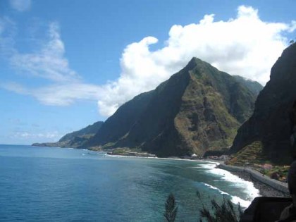 Ria en Otto hebben een hotel in Funchal. Om niet heen en weer te hoeven rijden, zijn ze maar blijven slapen. We willen vandaag gaan wandelen en gaan gewapend met wandelschoenen, lange broek en regenjas (ja het regent vanmorgen) op pad. Helaas nemen we ergens een verkeerde afslag en rijden via een prachtige weg met veel tunnels opeens naar de Noordkust. We besluiten dan deze kant maar te verkennen. De zon schijnt en we vermijden zoveel mogelijk de nieuwe snelweg, maar verkennen via de smalle oude weg het eiland.