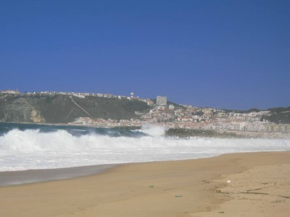 De fietsen komen we uit de schuur en samen met Rick en Coby fietsen we richting het oude centrum van Nazaré. In het centrum krioelt het van de mensen; wat een drukte. Nazaré kent nog vrouwen in kledendracht. Een aantal staan rekken vol met gedroogde vis te verkopen, andere staan tegen beter weten in de hele dag bij een kraam met noten. Vele plaatsen in Portugal hebben een treintje naar boven; de fineculair. In de fineculair zetten we onze fietsen in een soort bagagevak aan de voorzijde. We hebben wel veel bekijks. Eenmaal boven hebben we een schitterend uitzicht over de baai en de haveningang. We slenteren door het oude (en toeristische) deel en rijden naar de vuurtoren. Er naar toe gaat lekker snel, maar weer naar boven is een steile klim. Bert is de enige die de klim zonder afstappen volbrengt en wordt door de omstanders als een ware Bernard Hinault met applaus ontvangen. Van het afdalen naar de haven krijgen we alleen pijn in ons knijpspieren van het remmen. In de avond bezoeken Bert en Rick nog de visafslag, maar weten toch echt niet wat ze met 10 kg Sardientjes aanmoeten die ze te koop wordt aangeboden.